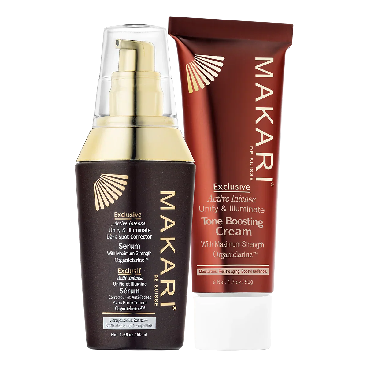 Discover the transformative power of the Makari Set. Designed to rejuvenate your skin, this duo includes the Tone Boosting Cream and Dark Spot Correcting Serum, working harmoniously to reveal a brighter, more radiant complexion.